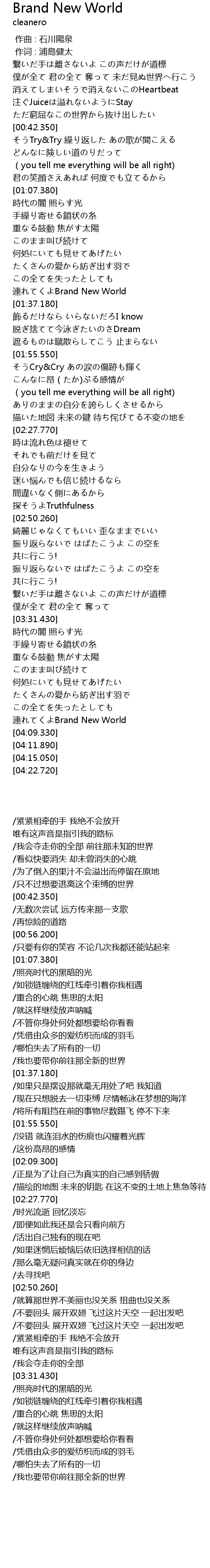 | [03:57.450] | lián Brand New World |
