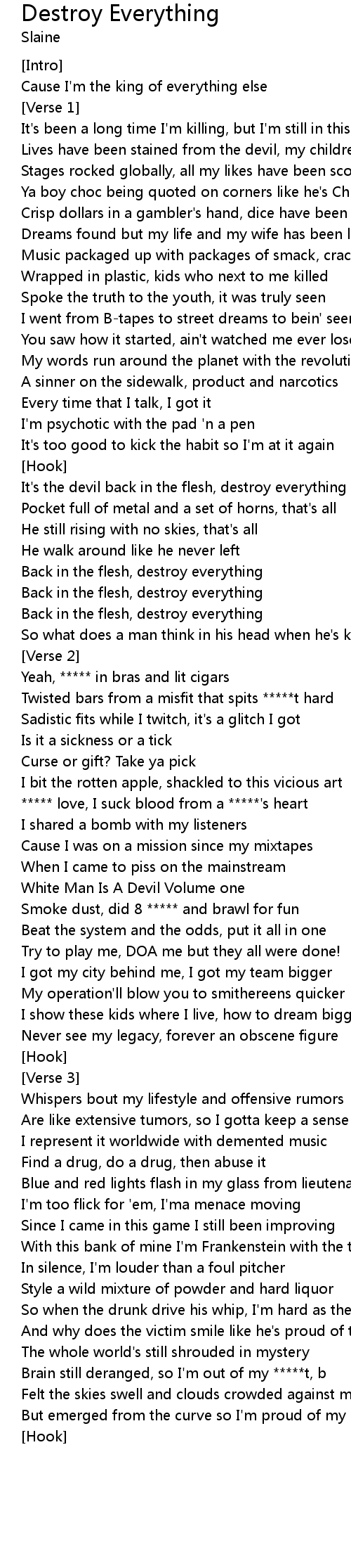It's the devil back in the flesh, destroy everything |