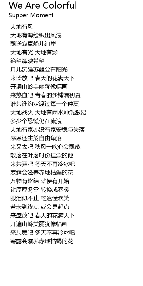 | Song | We Are Colorful |