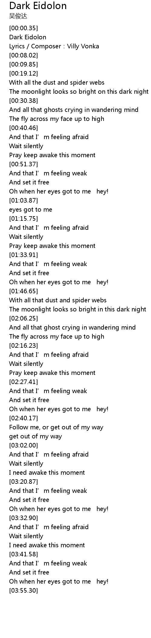 | [00:04.66] | Lyrics Composer: Villy Vonka |