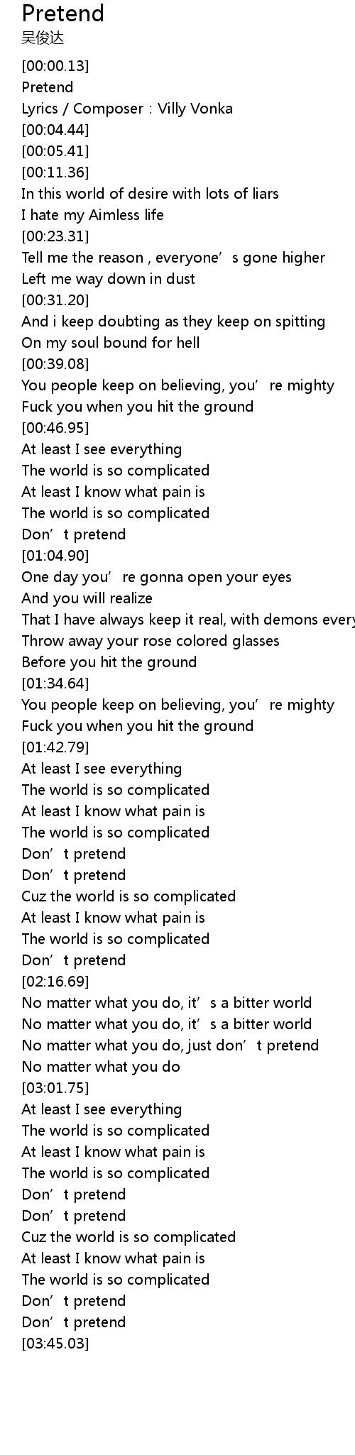 | [03:21.43] | Don' t pretend |