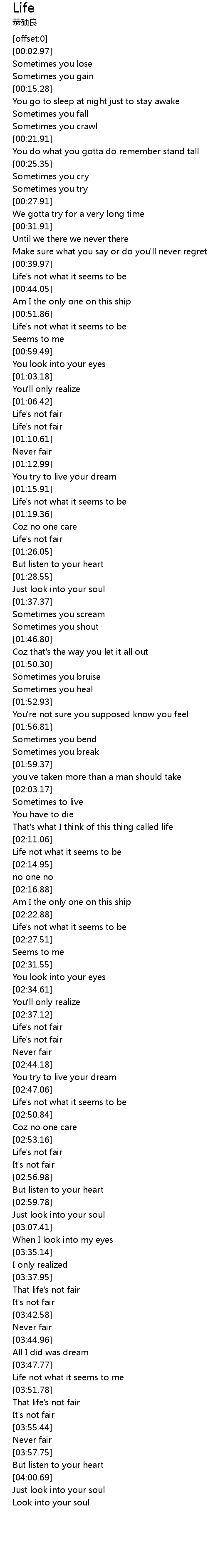 | [00:16.40] | You go to sleep at night just to stay awake |