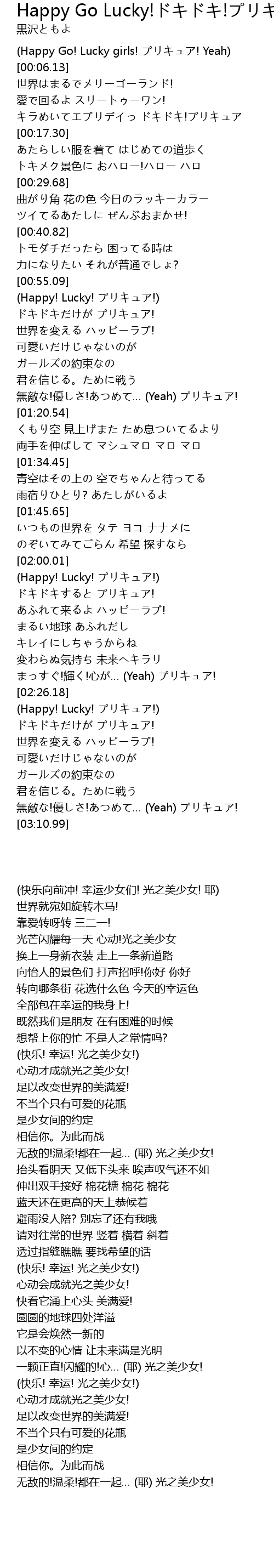 | [02:00.51] | (Happy! Lucky! プリキュア!) |