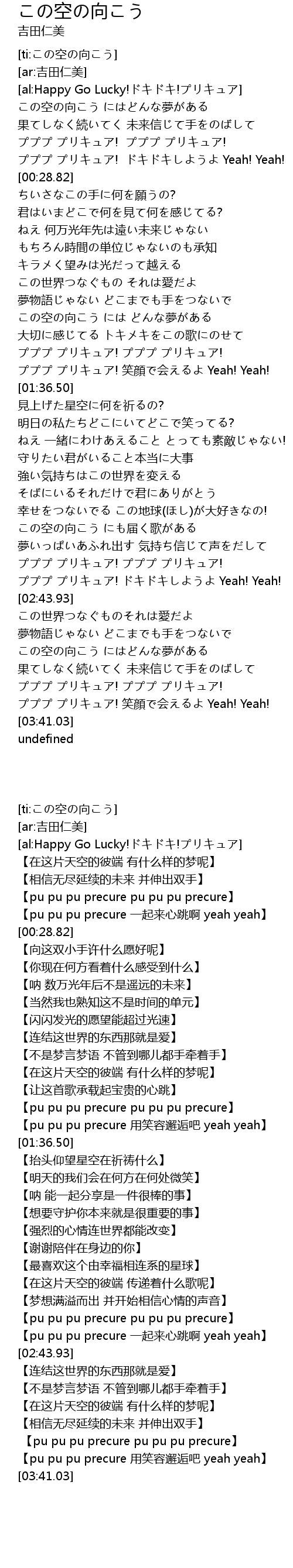 | [00:01.00] | この空の向こう にはどんな夢がある |