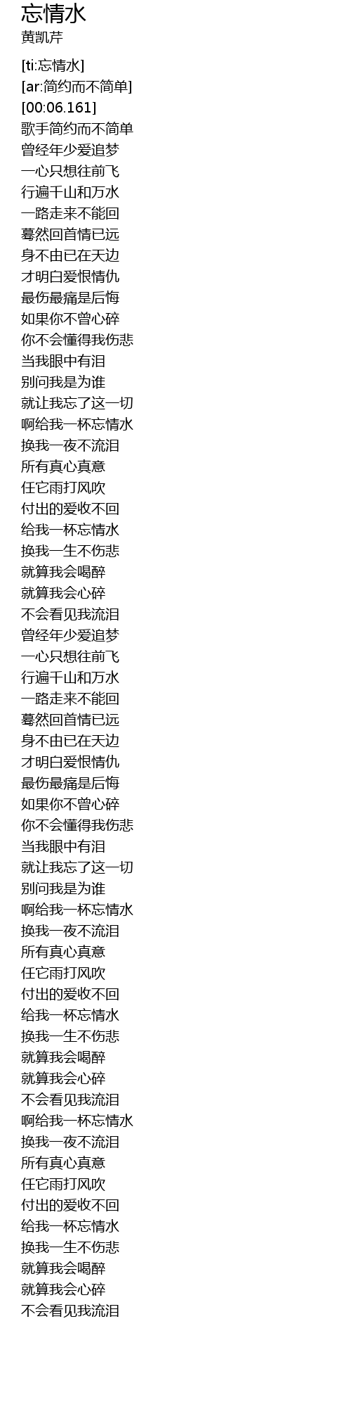 | [01:23.801] | 给我一杯忘情水 |