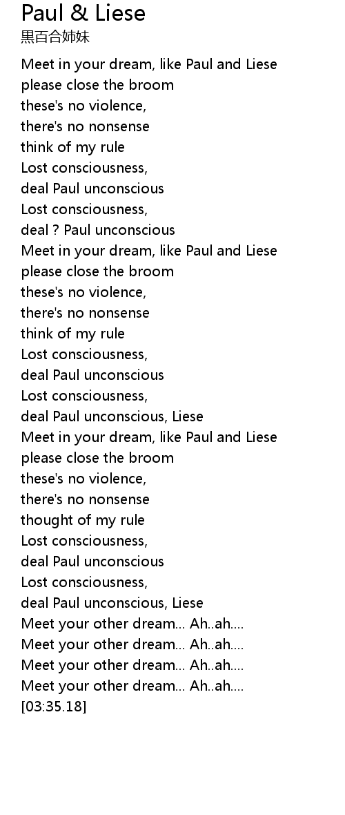 | [00:57.50] | Meet in your dream, like Paul and Liese |