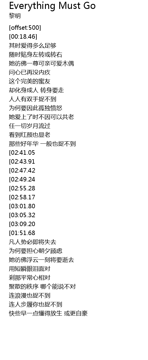 | [03:55.74][03:09.20][01:46.80] | Everything must go |