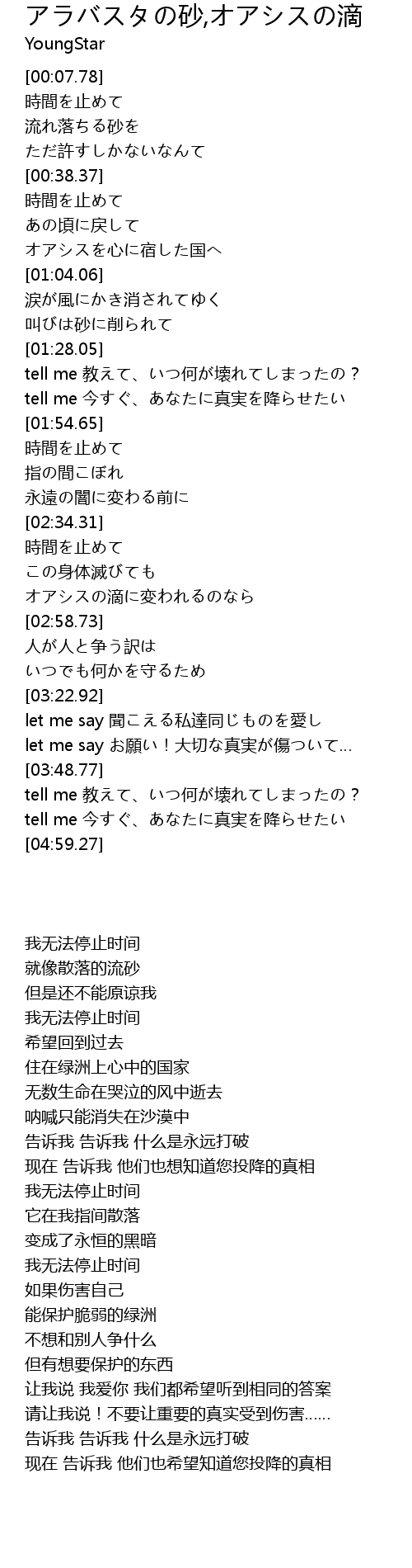 | [02:47.42] | オアシスの滴に変われるのなら |