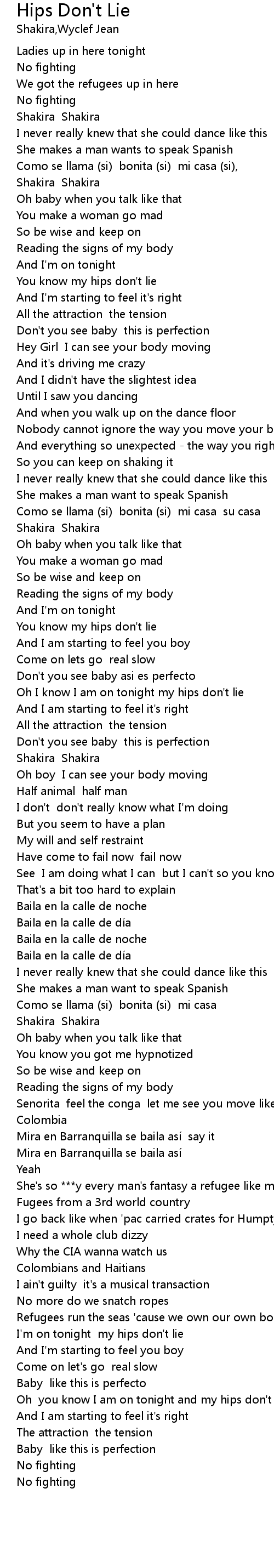 | [03:15.23] | Oh you know I am on tonight and my hips don' t lie |