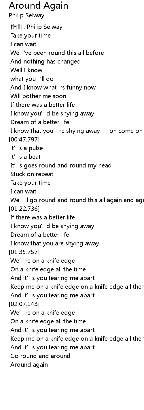 | [02:48.441] | Keep me on a knife edge on a knife edge all the time |