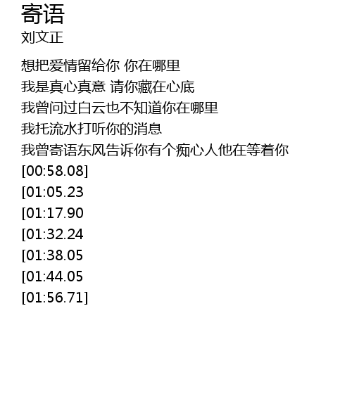 | [02:35.80][01:38.05] | 我托流水打听你的消息 |