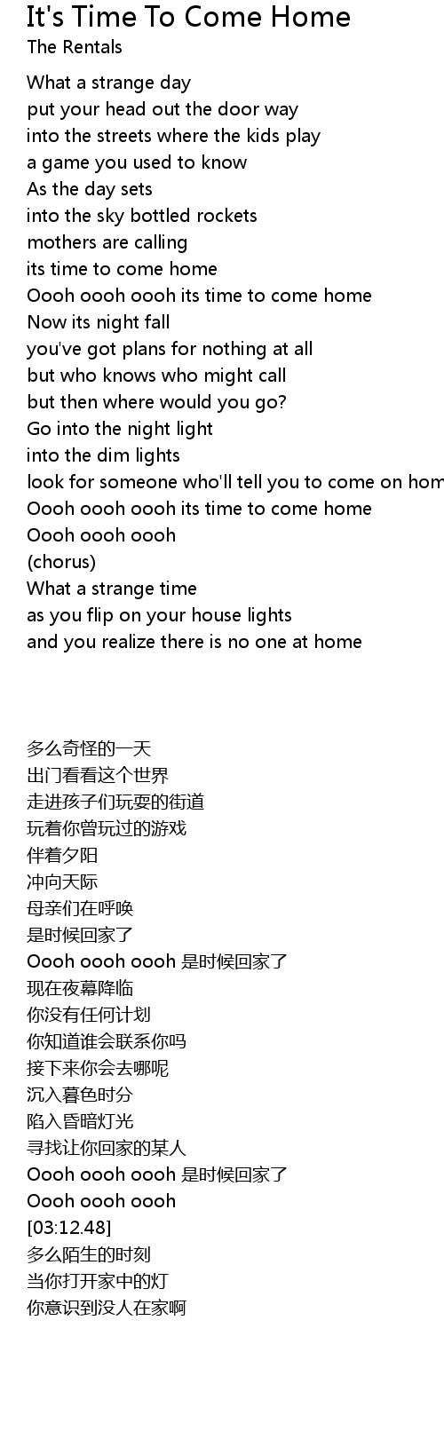 Oooh oooh oooh its time to come home |