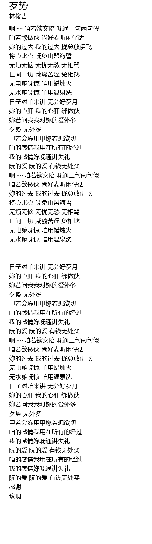 | nai ruo wen wo wo dui nai de ai wai duo | |
