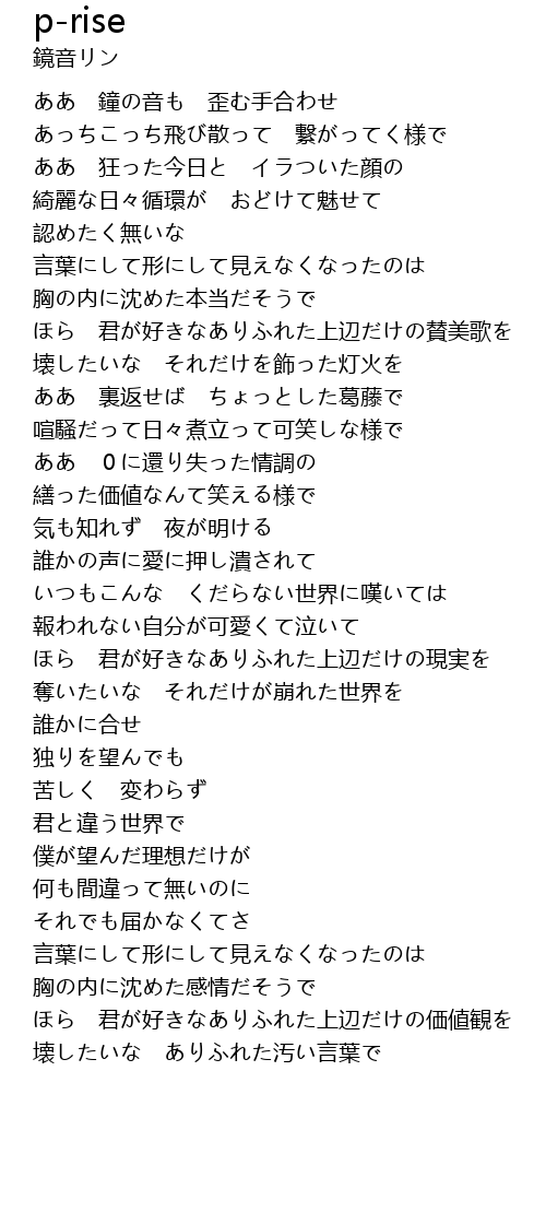 | [01:07.620] | ほら 君が好きなありふれた上辺だけの賛美歌を |