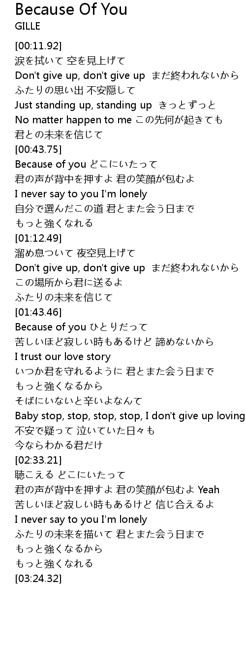 | [02:15.46] | Baby stop, stop, stop, stop, I don't give up loving you |