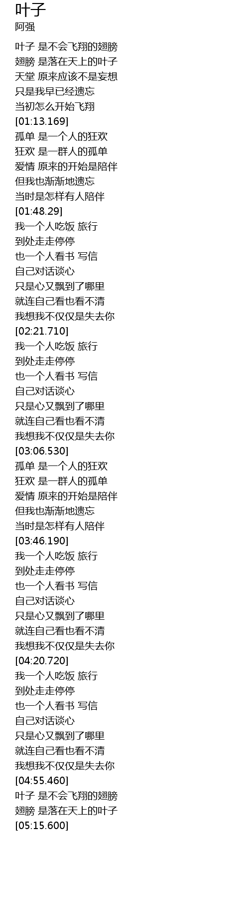 | [04:58.330] | 叶子 是不会飞翔的翅膀 |