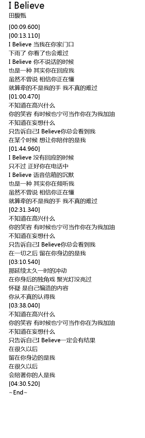 | [03:58.480] | 只告诉自己I Believe一定会有结果 |
