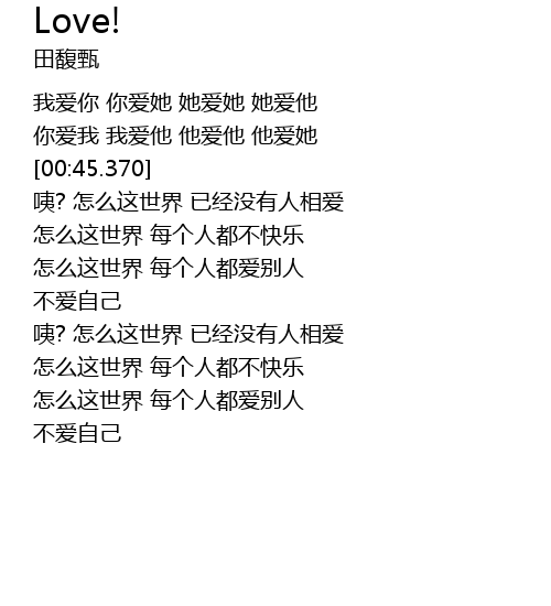 | [00:45.790] | 咦? 怎么这世界 已经没有人相爱 |