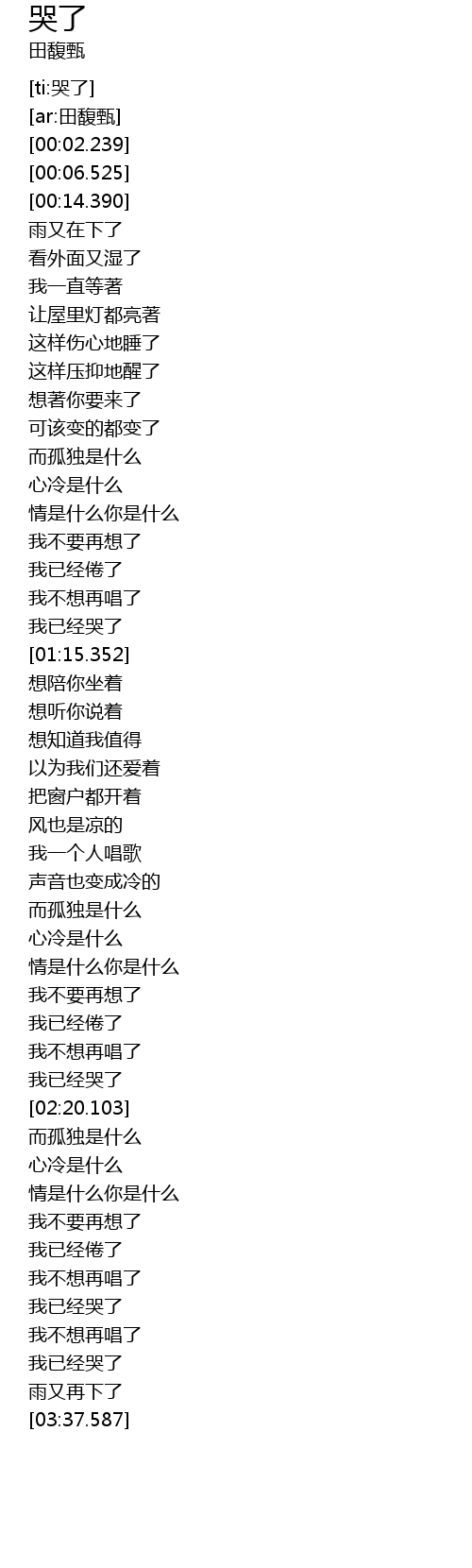 | [03:14.987] | wǒ yǐ jīng kū le |