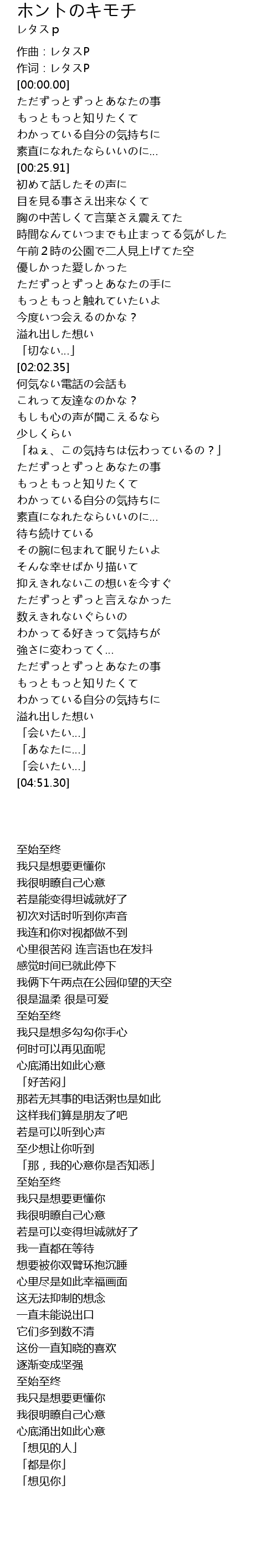 | [00:01.33] | ただずっとずっとあなたの事 |