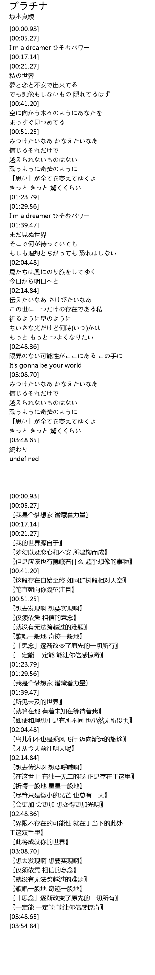 | [00:10.27] | I'm a dreamer ひそむパワー |
