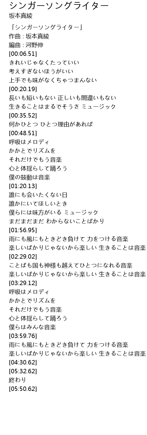 | [04:15.54] | 楽しいばかりじゃないから楽しい 生きることは音楽 |