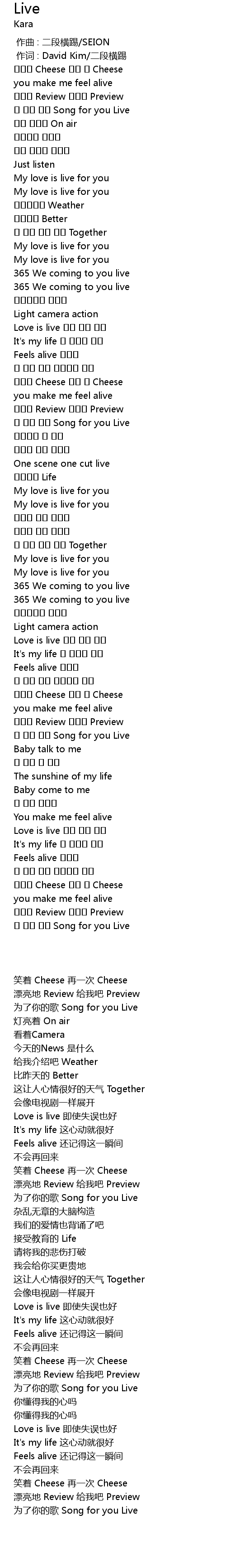 | [00:29.690] | My love is live for you |