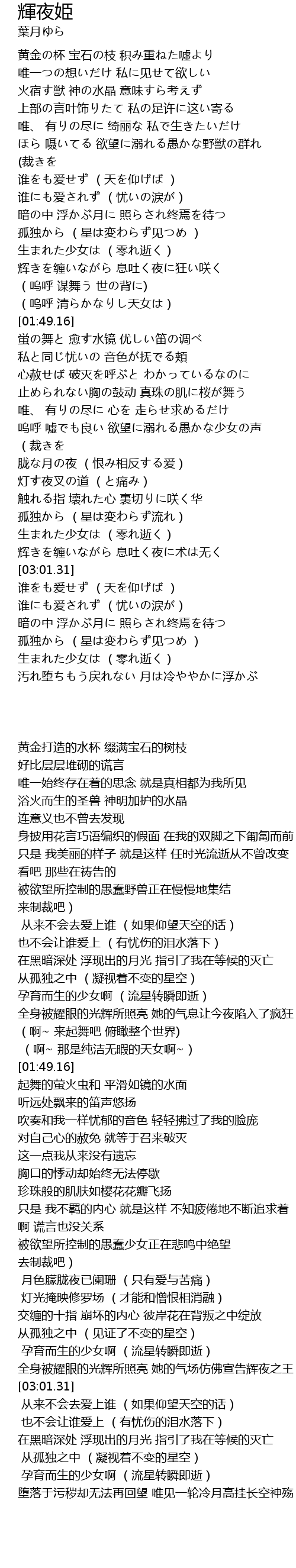 | [03:54.01] | 生まれた少女は (零れ逝く) |