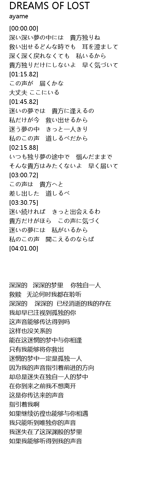 | [01:45.95] | 迷いの夢では 貴方に逢えるの |