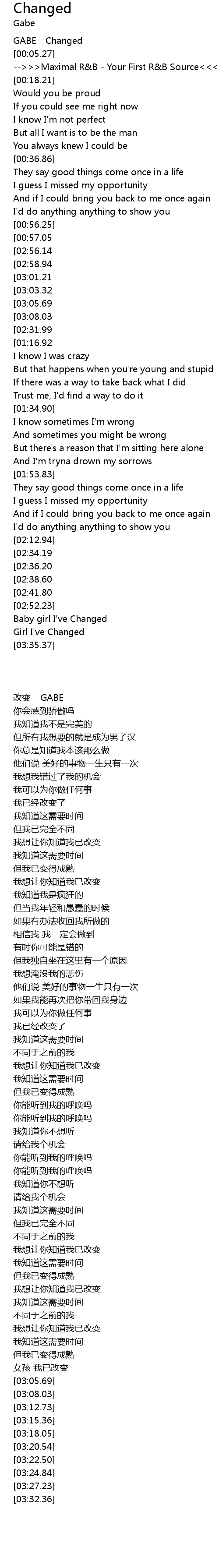 | [00:02.50] | GABE - Changed |