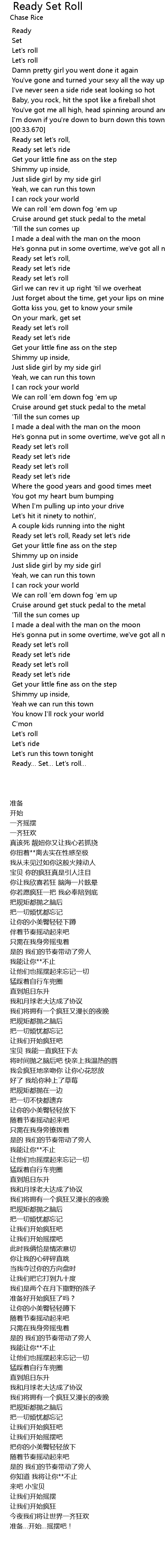 | [00:34.330] | Ready set let' s roll, |