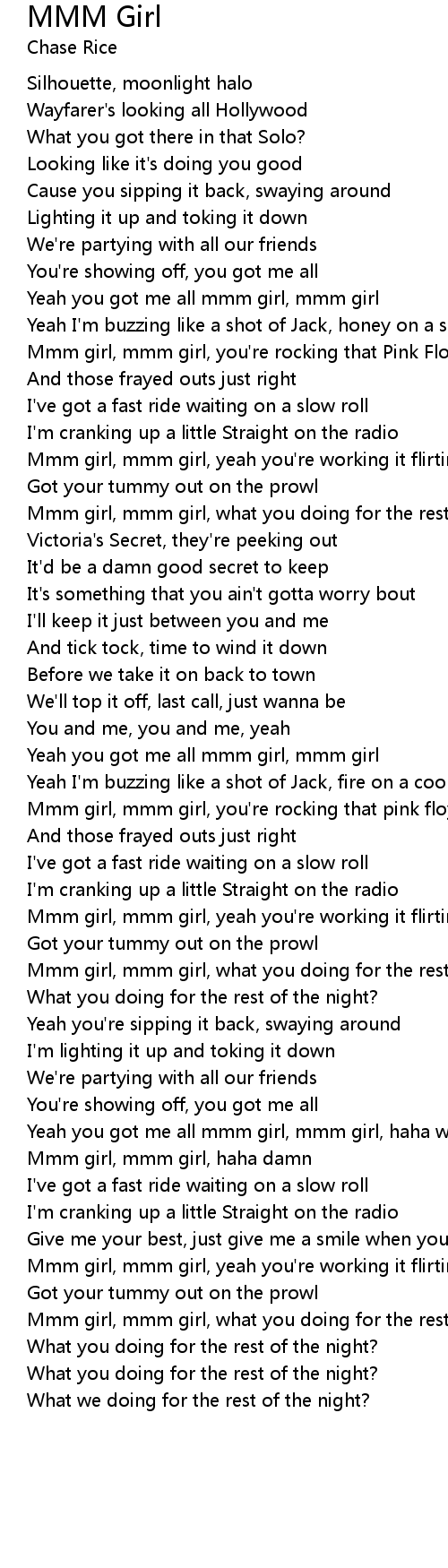 Mmm girl, mmm girl, what you doing for the rest of the night? |