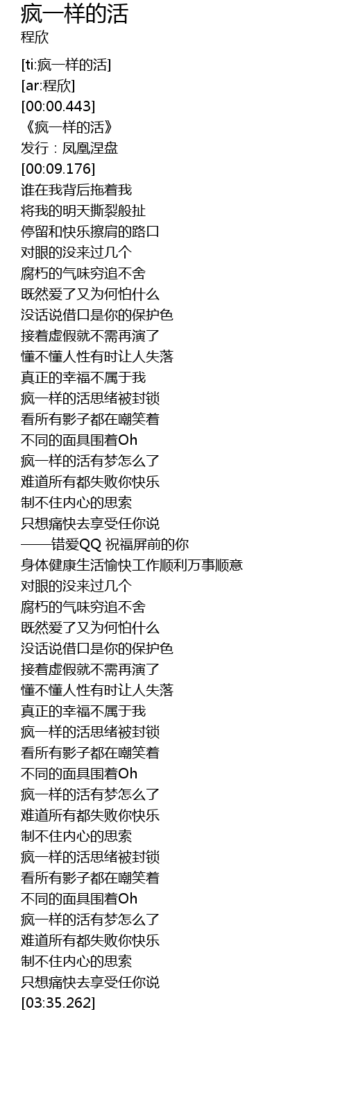 | [01:31.855] | 疯一样的活有梦怎么了 |