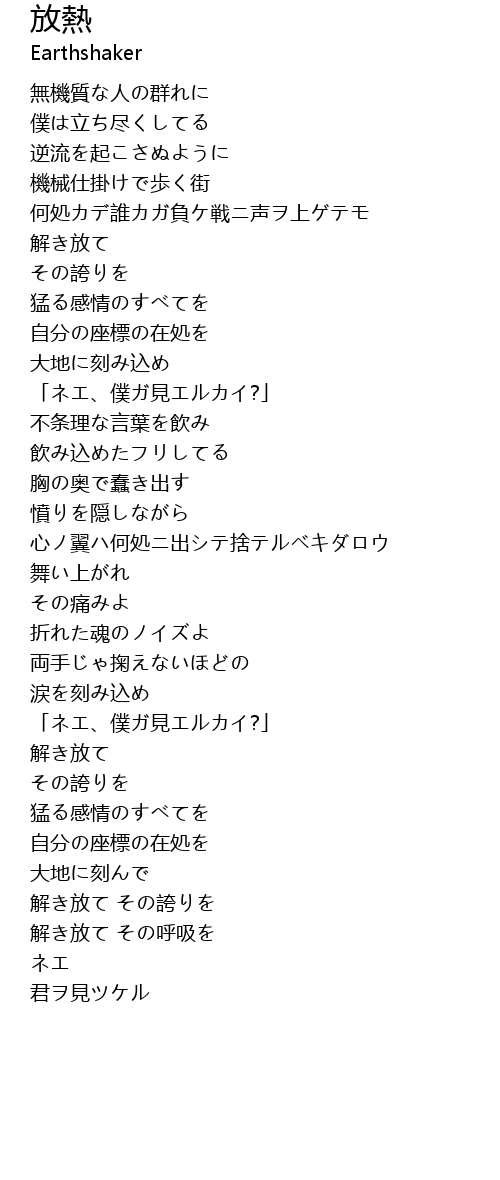 | Song | 放熱 |