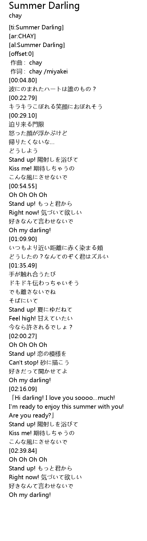 | [00:01.00] | 作词 : chay /miyakei |