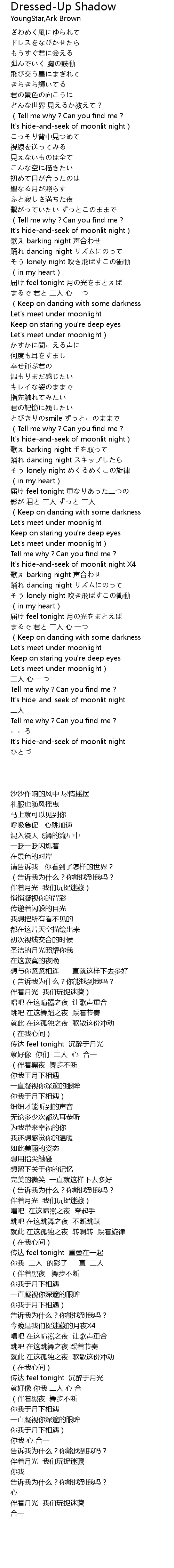 | [02:58.36] | It's hide-and-seek of moonlit night) |