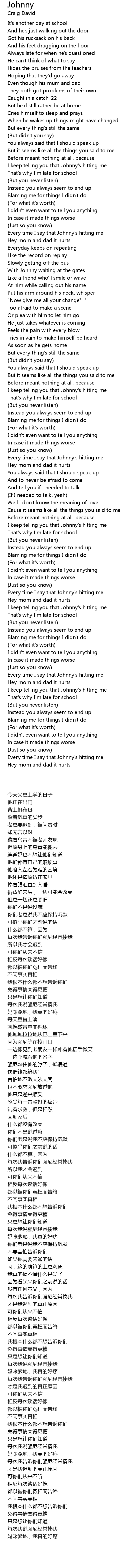 | [00:53.90] | I keep telling you that Johnny's hitting me |