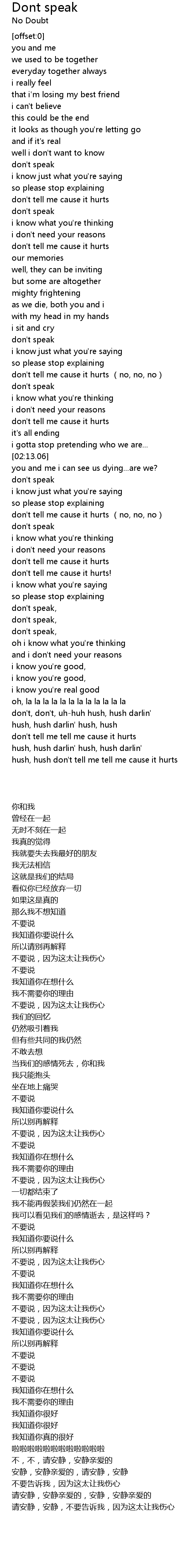 | [01:42.52] | don' t tell me cause it hurts no, no, no |