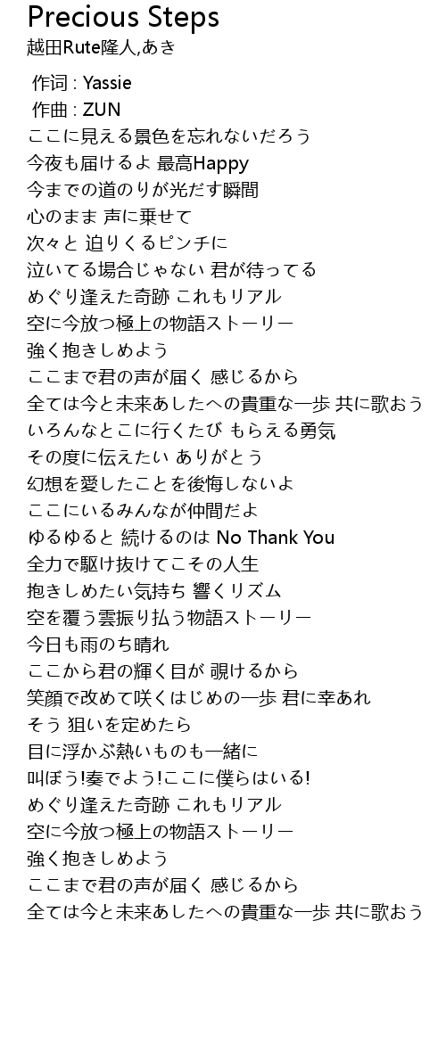 | [03:51.959] | 全ては今と未来あしたへの貴重な一歩 共に歌おう |