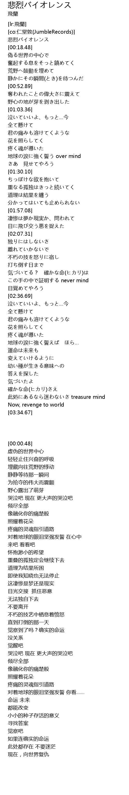 | [00:00.48] | 悲烈バイオレンス |
