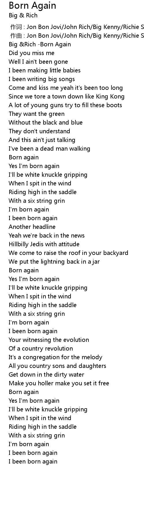 | [00:50.440] | Born again |