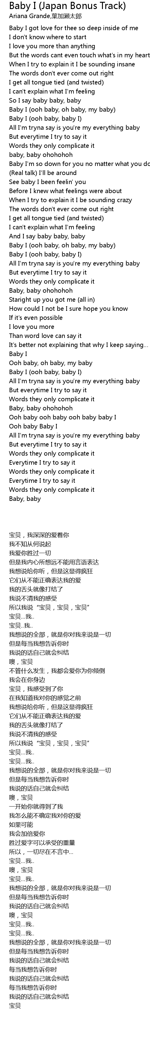 | [00:46.330] | Baby I (ooh baby, oh baby, my baby) |