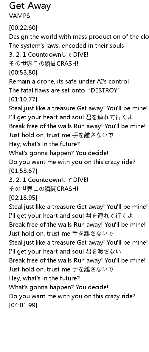 | [03:04.62] | Break free of the walls Run away! You' ll be mine! |