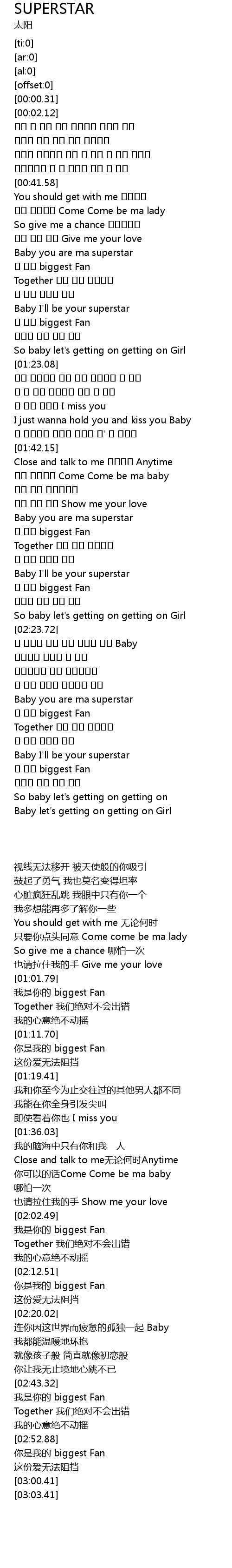 | [02:12.51] | Baby I' ll be your superstar |