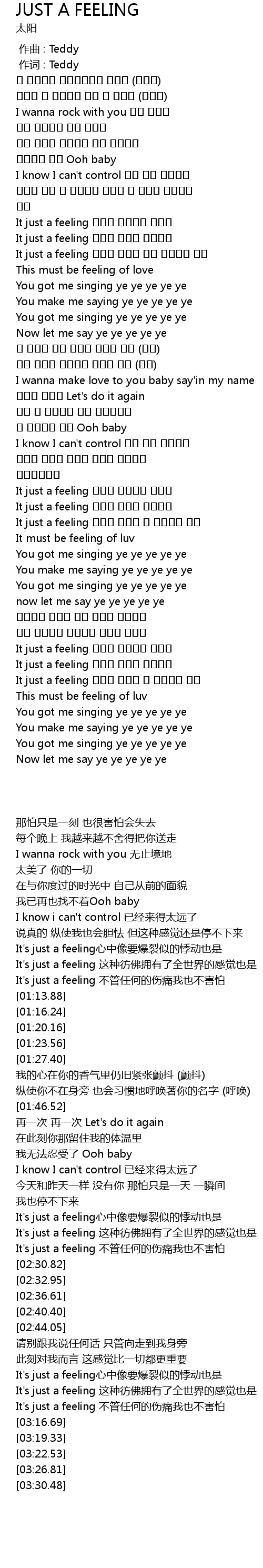 | [02:17.46] | It just a feeling 가슴속 터질듯한 설렘도 |