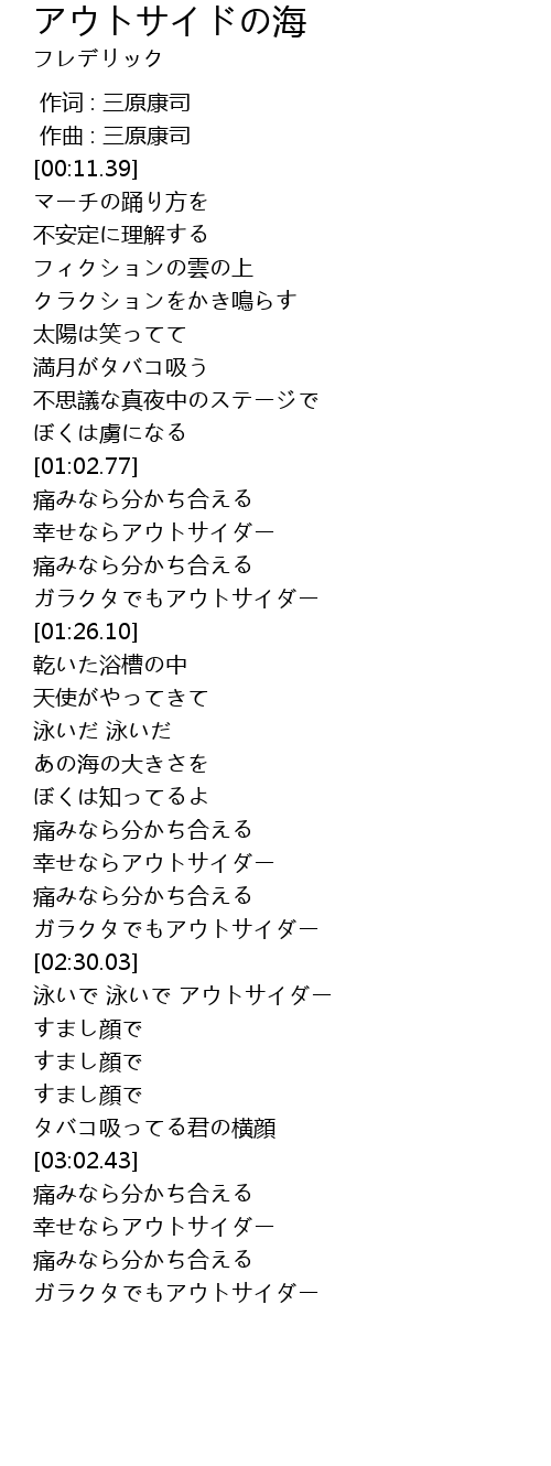 | [02:35.24] | 泳いで 泳いで アウトサイダー |