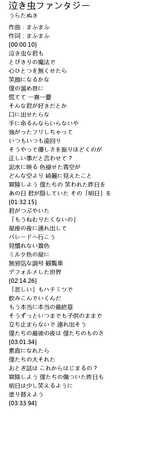 | [01:48.85] | 「もうねむりたくないの」 |