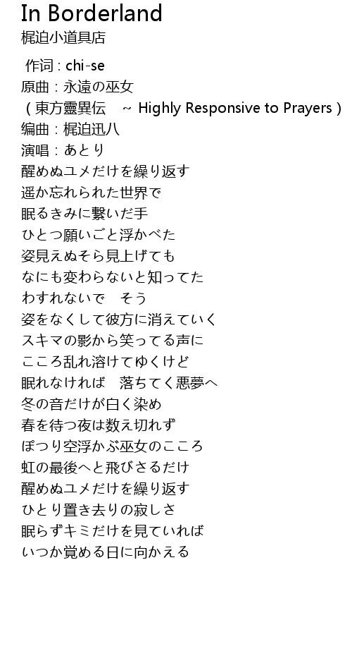 | [00:00.4] | (東方靈異伝 ~ Highly Responsive to Prayers) |