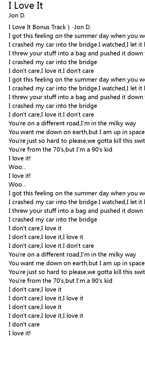 | [00:00.420] | I Love It Bonus Track Jon D. |
