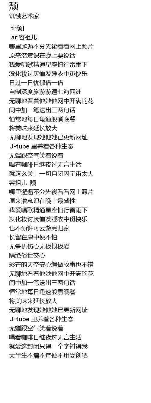 | [03:33.946] | 就爱这封闭只得一个字衬得我 |